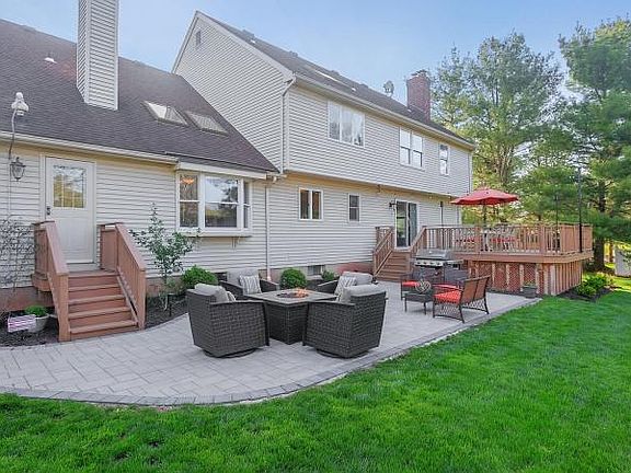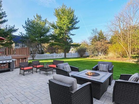 Discover this majestic 3200 square foot home nestled on a quiet street in sought after Country Classics. Fall in love with the stately brick front, followed by a grand two-story entry enhanced by elegant marble flooring, glorious chandelier and curved staircase with oak treads. The formal living and dining rooms are light & bright featuring newly refinished hardwood flooring & decorative mouldings. Admire a heartwarming family room spotlighting a masonry fireplace and built-in dry bar for all of your entertainment needs. A sliding glass door opens to a welcoming back deck and brand new paver patio overlooking a picture perfect backyard. You'll find granite counter tops & stainless steel appliances in the spectacular kitchen along with a vaulted ceiling, skylights, bay window & cozy fireplace in the adjacent breakfast room. A convenient back staircase leads you to an expansive multi-purpose loft that can function as an office, sitting room, exercise room, 5th bedroom, playroom... Every bedroom is generously sized, including the master suite featuring two closets & en suite bathroom complete with vaulted ceiling, skylight, jetted tub & stall shower. You'll adore the finished basement providing four leisure rooms, full bathroom & plenty of storage. More highlights include a 1st floor laundry room, 2 car garage, ring camera, shed, irrigation & security system + washer/dryer/2 fridges stay! Located down the street from Amsterdam Elementary School, this home is truly a treasure!