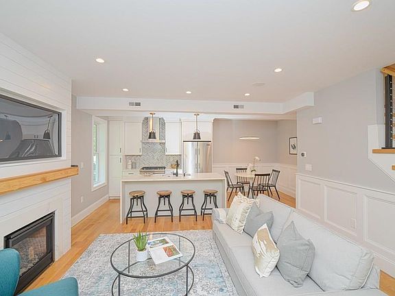 This custom designed townhouse is located along the orange line corridor. If you're looking for a home near your favorite JP hot spots, this is the place! Walking distance to the Jp Brewery, Southwest corridor, parks, tennis courts, Turtle Swamp Brewing, less than a 5 minute walk to Green St and Stony Brook T Stations and a short train ride to assembly rowe. Designed with the finest finishes, this kitchen includes two tone shaker cabinets featuring a woodgrain island, Calacatta Venice quartz counter tops, JennAir appliance package, black hardware and brass & black pendent lighting. The living room features a gas fire place finished with a white oak mantel and shiplap, 4" white oak flooring and recess lighting throughout. The bathrooms were tiled with imported Spanish Porcelanosa tile and include floating wall mounted vanities and chrome fixtures. This luxuriously designed home combines the convenience of city living with timeless finishes that will never go out of style!