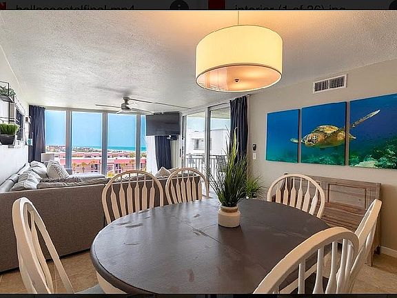 Floor to ceiling glass window wall in the living room open up to a very strong view of the ocean for the money. Kitchen includes a bar sink and beautiful tray ceiling. Master bedroom has sliders going out to the patio and master bath has renovated walk in shower. Most units in complex have washer and dryer in kitchen from original floor plan, however this unit was renovated to have them in the hall closet which opens the kitchen up nicely and is more practical use of space.