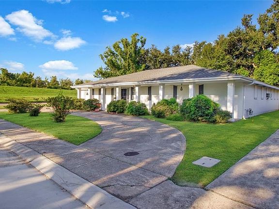 Restore this vintage gem to its former glory! Located on an oversized corner lot, opposite the levee in Harahan, this spacious 6-bed, 3-bath home exudes mid-century modern charm. Original terrazzo floors, a sunken living room, and vintage bathrooms are just a glimpse of its potential. This sturdy brick home features a 5-year-old roof, roll-down storm shutters, off-street parking for 5 cars, rear yard vehicle access, a covered patio, and a large garage with indoor bbq pit/pizza oven and additional half bath. The layout is already perfect. House has never flooded and resides in Flood Zone X. Sold AS IS, seller will make no repairs or concessions.