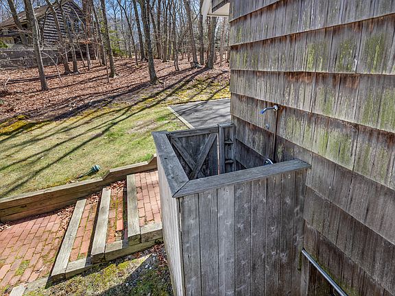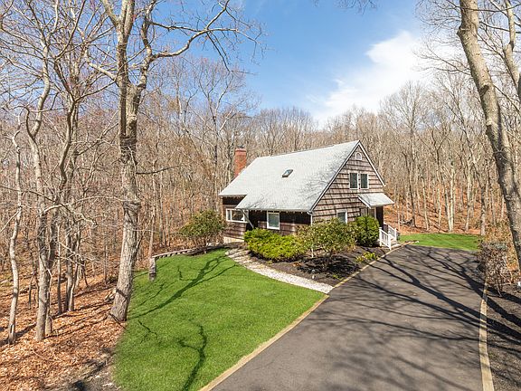 Enjoy this three-bedroom, two-bath house with open living room with fireplace, dining room, kitchen, central air-conditioning, and a heated pool in a beach community near Sag Harbor with shared Pickleball court and bay beach.