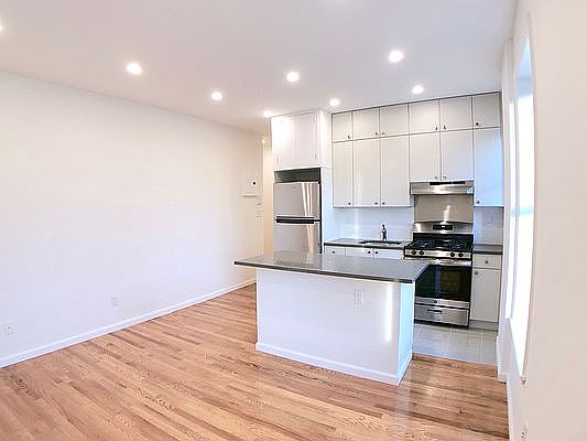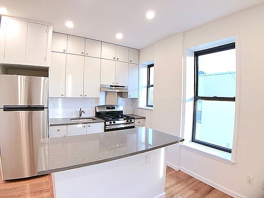 1-bedroom apt on the 3rd floor of a 3-story walk-up building on the corner of a quiet, tree lined street with all single or two-family homes. Luxuriously renovated 1-bedroom apt on the 3rd floor of an 18-unit walk-up apt building perched at the corner of a quiet, tree lined street with all single and 2-family homes. Features a large open kitchen with abundant Euro style floor to ceiling cabinetry, and granite counter space, LED under-cabinet lighting, stainless steel full appliance package, in-unit washer/dryer, well appointed bathroom, large closets with overhead storage and oak plank floors. HEAT & HOT WATER INCLUDED. Electric and cooking gas not included. Building wired for Verizon FiOS and Optimum. Commute Time: 45 minutes to downtown Manhattan via a short walk to the "A" and "C" trains at Euclid Ave station or "J" and "Z" trains at Crescent St station. Easy walk or drive to shopping.