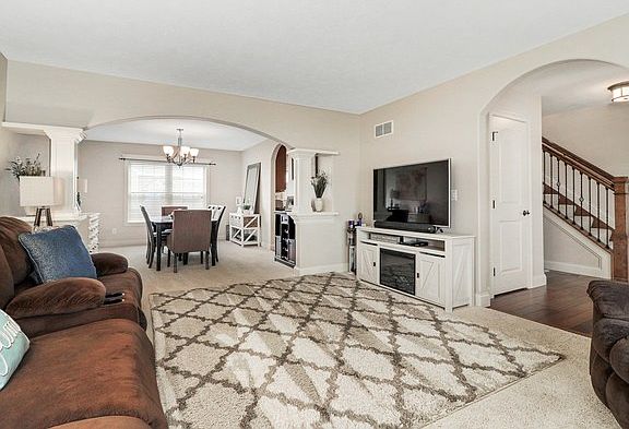 Wonderfully maintained home in desirable Harvest Pointe subdivision with no through traffic. Located on a large corner lot. Seller has painted first and second floors to beautiful neutral tones ready for the buyer to accent to his or her tastes. 2019--new dishwasher, stove, and microwave, some light fixtures (most of which are LED lights). Huge master suite with walk-in closet. Master bath has double bowl vanity with bathtub and separate shower. Convenient upstairs laundry. There is a rough in for a whole house vacuum. Full basement with egress window and bath rough-in. Pergola and trees add to back yard privacy.