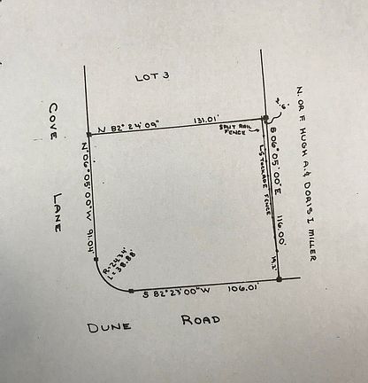 Great lot on the corner of Dune Rd. and Cove Lane.Nice buildable lot for appx. 2000 sq. ft. homeNo permits at this time.