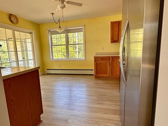 Welcome to this conveniently located single-family home in Portsmouth, NH! This well-maintained property offers one floor living with 3 spacious bedrooms and 2 full bathrooms, featuring an open-concept layout perfect for both everyday living and entertaining. The vaulted ceiling in the living room adds a bright, airy feel, while the adjacent kitchen flows into a four-season sunroom ideal for relaxing or enjoying your morning coffee year-round. This home offers a mix of manufactured hardwood flooring, a carpeted primary bedroom, and tiled bathroom floors. The primary suite includes generous closet space and an en suite full bath. A dedicated laundry room with washer and dryer adds convenience, and there is ample storage throughout the home. Additional highlights include an attached two-car garage, a gas range for the home chef, and solar panels to help reduce electricity costs. L ocated in a beautiful neighborhood just minutes from downtown Portsmouth, area beaches, and all major commuter routes, this home offers the perfect blend of comfort, efficiency, and location. One year lease. Pets negotiable.