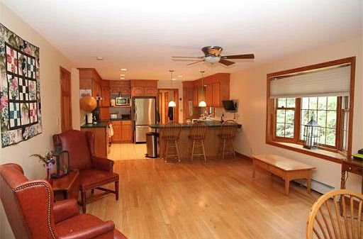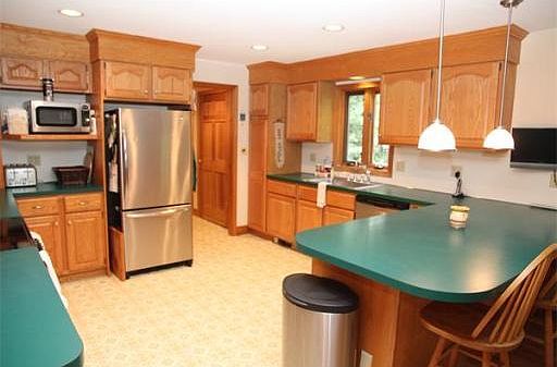 Four-bedroom classic Cape in desirable Durgin Woods neighborhood features open-concept kitchen/dining/sitting area overlooking deck and wooded back yard. Living room features wood floors and wood fireplace. Large first-floor bedroom with wood floors, entry way with tons of closet space. Second floor includes a two-room Master suite with three closets and Master bath, two additional spacious bedrooms, full bath. Attached two-car garage.