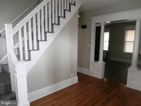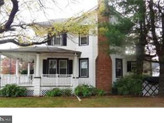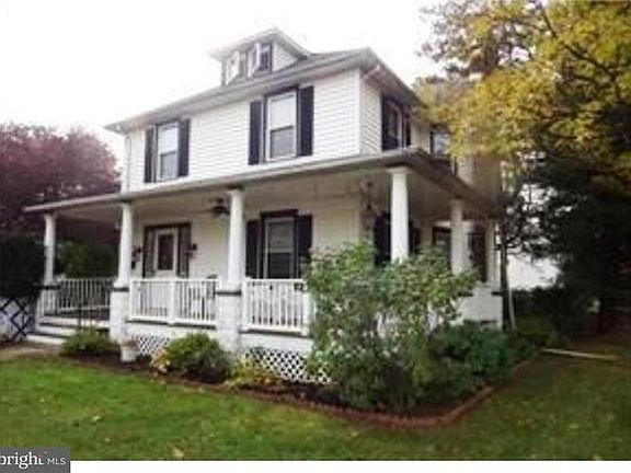 Welcome to this inviting colonial with large wrap around porch located on a corner lot. Enter into the large foyer featuring dark wood floors, trim and banisters. Walk down the hallway to the spacious dining room with lots of natural light and hardwood floors. The oversized great room has full wall built in shelving and a brick fireplace. The eat in kitchen offers updated cabinets and appliances and a tile floor. Walk up to the second floor to find a massive master bedroom and 2 more nice sized bedrooms. Other amenities include full basement, walk up attic, detached 1 car garage and in ground pool. Close to all major roadways and public transportation and minutes to the McGuire Fort Dix base, Trenton and Philadelphia.