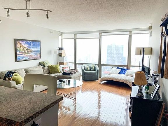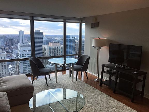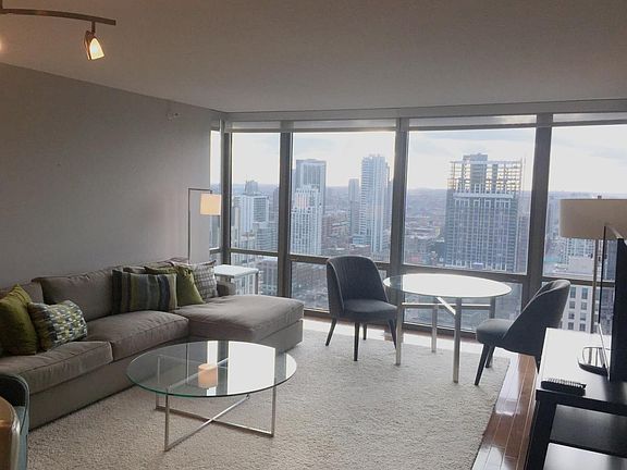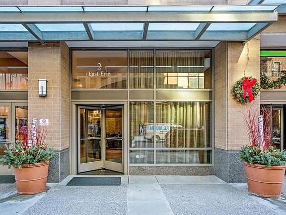 1 bed + 1 Den (den w/o door), 1 bath at the highly desirable 2 E. Erie building! Building located in the center of downtown Chicago, the unit features a granite kitchen, with a large living room facing west with a great city view! The Master bedroom comes with a big walk-in closet and in-unit Washer/Dryer. 2nd bedroom can be a guest suite or den. Luxury building amenities include 24-hour door staff, sundeck, in-building drycleaners, and top of the line fitness center. Parking available for an additional $200/month. Storage unit included. Renter responsible for electricity, all other utilities included in the rent.