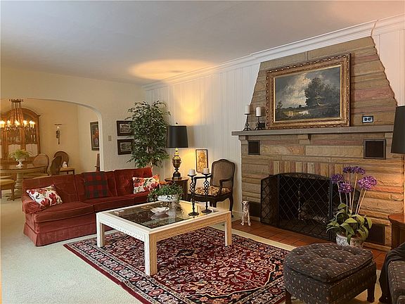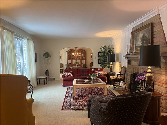 This charming 2,300 sq. ft. stone ranch sits on a .82 acre lot, offering scenic tranquility. Its classic tiled roof adds to the home's durability and timeless appeal. Inside, you'll find three large bedrooms, each with ample space for relaxation, plus an additional office or den for work or leisure. The large kitchen features a comfortable eat-in area, perfect for casual dining and gatherings. The formal dining room is a wonderful area for your dinner parties. The enormous living room is cozy and comfortable and features a beautiful fireplace. Storage is no issue, with an abundance of closet space throughout the house. Recent updates include a newer furnace and hot water heater, ensuring efficiency and comfort year-round. This beautifully maintained ranch is the perfect blend of space, style, and convenience. Close to all amenities and highways.