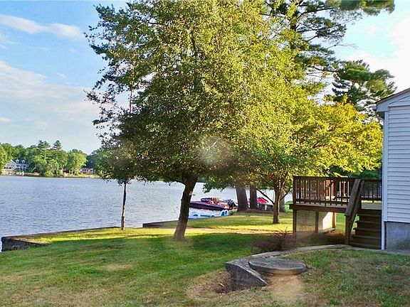 Waterfront on Johnson's Pond! Unlimited water play ... enjoy boating, annual ski show, fireworks & more! Cozy ranch with 2 Bedrooms, 1 Bath, detached 2-car Garage and Deck overlooking the water. Quiet side of the pond. Estate Sale ... As is!