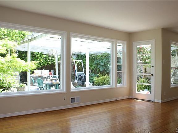 Located close to town, this great starter-home with large sunny back patio & garden area has hardwood floors, new interior paint, cozy fireplace in living room, mostly dual pane windows and a 2-car garage. Very nice just the way it is, but lots of upside potential as well. The distinct level areas in back get lots of sun and allow for multiple uses - perfect for a protected, but visible garden on one side & large entertaining area on the other.