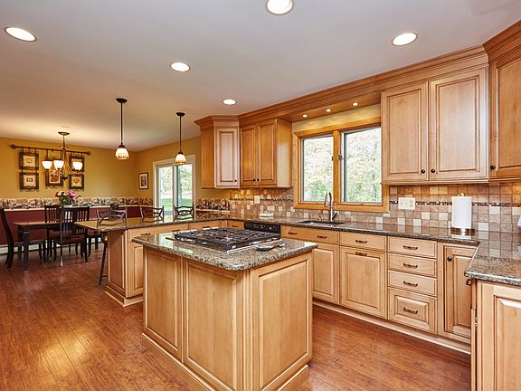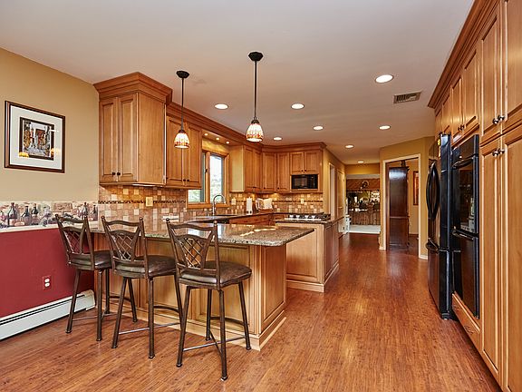 Stunning! Cul de sac-3yr kit w custom "Brook Haven" cabs, granite counters & breakfast bar ..Exquisite 2016 master bath w/gorgeous tiling oversized glass shower &skylight! newer cac,roof,& electric. Spacious floor plan with soaring ceiling great room with stone floor to ceiling gas fireplace will de light the most discriminating buyer.Gather around the wet bar in the corner with your friends! The kitchen is impressively designed with abundance of warm tone wood 42 inch cabinets, center isle cooktop and double gas wall ovens.Sliders from the kitchen to a massive deck facing private wooden yard. Luxurious huge master bath triple sized frameless glass shower with elegant tiling, Double sinks, granite counters and skylight above you will feel like you are in a resort spa