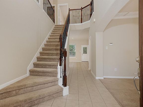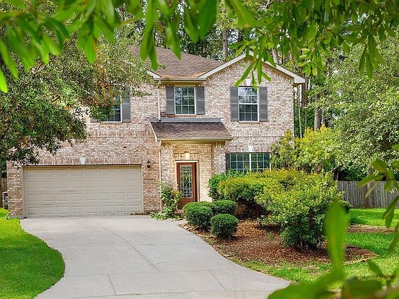 Beautiful Village Builders ''Cypress'' floor plan on a private, cul-de-sac lot in Sterling Ridge! Great family home featuring carpet & tile floors, neutral paint colors, island kitchen w/granite counters, gas cooking & plenty of cabinet space (fridge incl); formal dining could be a study; den w/gas log FP; game room up w/built-in computer desk; generous room sizes. Large fenced yard w/patio is perfect for kids & the greenbelt ensures privacy w/no neighbors behind!