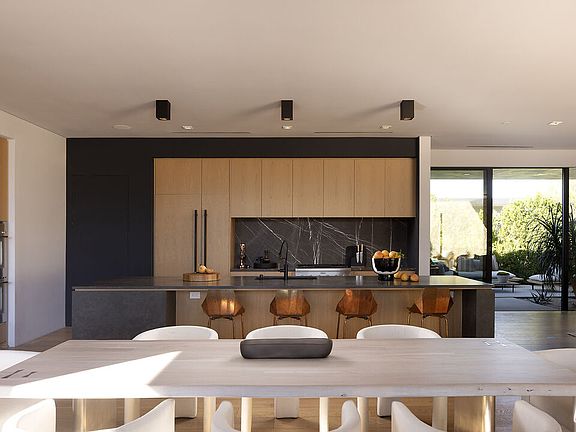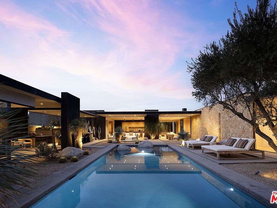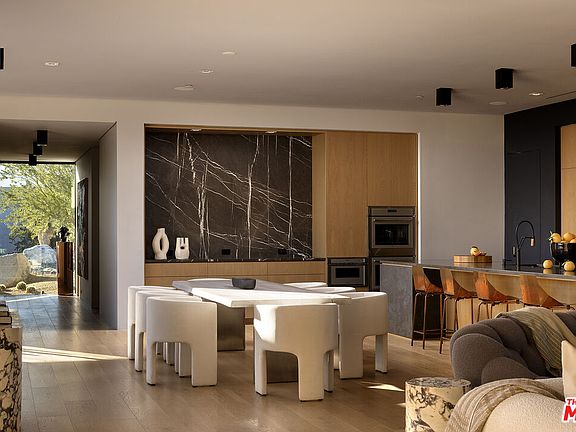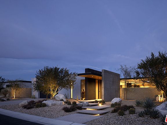 Sean Lockyer and Studio AR&D have designed and helped to create one of the most authentic architectural projects completed in recent years. Echo's bold modern architecture seamlessly integrates with its rugged yet majestic desert surroundings in Rancho Mirage. Flooring flows effortlessly from interior to exterior, extending out into the landscape to create a striking interaction between home and nature. Native flora edges right up to the living areas, further uniting the two realms. Mountainous panoramas are framed by expansive walls of glass in the spacious great room and master bedroom, engaging both distant vistas and immediate views. In a clean, crisp design technique, walls continue from indoor spaces to the outdoors in one long, beautiful sight line. This is floor plan 2, featuring a detached casita for added flexibility and privacy. Additionally, an outdoor kitchen has been thoughtfully added by the architect, enhancing the seamless indoor-outdoor lifestyle with a fully equipped space for al fresco dining and entertaining amid the desert backdrop. The home spans approximately 4,155 square feet with 4 bedrooms and 4.5 baths, complete with a private pool, south-facing orientation for optimal light and views.