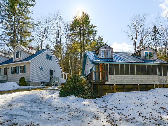 This is a great opportunity to own two houses -which are located within walking distance to the Shawnee Peak Ski area and your shared beach rights on Moose Pond. Each house has a kitchen, living room, 2 bedrooms, 1 bath each, enclosed porches, one with a large back deck off the 3 season room and both have room to finish off the second floors. The larger of the two homes has been totally remodeled after having a freeze up about 4 years ago. The small home has about 720 sq. ft. of living space. The right of way is a left when you have to turn at the bottom of Edgewater and there is a 10' walking path to the beach. All offer by 3/29/22-answered by 3/30/22.