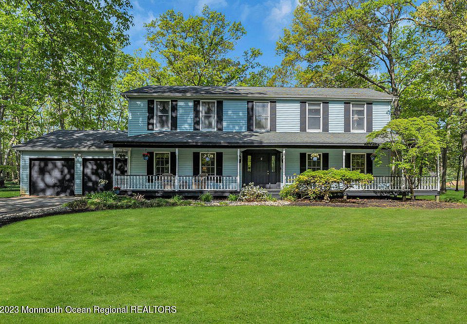Check out this spacious colonial located on the corner of a quiet, serene street. Relax on the wraparound porch and then enter the beautiful home with an impressive layout. The entire home has been well maintained, from the brand new flooring, to the updated kitchen with granite countertops to the living room, dining room, cozy family room, bedrooms and bathrooms. The second floor has 4 large bedrooms with big closets and 2 full baths, with an open office area as well. The main floor was extended and now includes an oversized great room and full bathroom. With its own private entrance, this is the ideal guest/mother in law suite. There is abundant storage space in the 2 car garage. Double sliding doors in the kitchen lead to the deck and expansive backyard oasis. This home has everything you need to live comfortably!