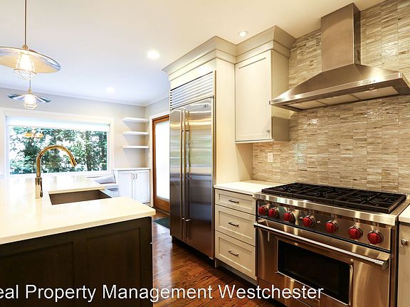 Updated 4 Bed Colonial - This modern 4 bedroom 2.5 bathroom Colonial is on set on .29 acres in sought-after Rye. Open floor plan kitchen/den area with Sub Zero fridge, Wolf Gas Range, built in Wine Cooler and much more. Flat panel TV's as shown are included in the rental. Master bathroom has double sink along with a large soaking tub and walk-in shower. Also a large walk-in master closet as well as 2 additional closets in the master bedroom. Hardwood floors as shown throughout. (RLNE6626019)