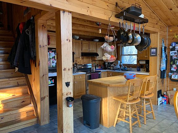 Charming, partially furnished log cabin in the hills of Etna. Nestled on 5 acres off of Dogford Road, the house offers privacy and rural living while being only 15 minutes from downtown Hanover, Lebanon, and West Lebanon, 10 minutes to DHMC. Inside, find all-wood finishes and exposed beams, sun-filled dining room/kitchen, and cathedral ceiling living room with wood stove on a beautiful stone hearth. Main floor has kitchen, living room, bathroom, and 1 bedroom; second floor loft with balcony overlooking living room. Unfinished basement with laundry and built-in storage shelves. New insulated cellular shades throughout the house. Outside features include covered front porch, rear deck, convenient storage shed, woodshed, raised garden beds, and a fire pit. Less than 1 mile to Appalachian Trail trailhead and Trescott Water Supply Lands trail network, and a short drive from many other recreation opportunities. 16 MONTH LEASE February 2021 June 2022. Tenants responsible for all utilities (recycling pickup provided by town of Hanover). No smoking. Pets subject to landlord approval (additional fee may apply).