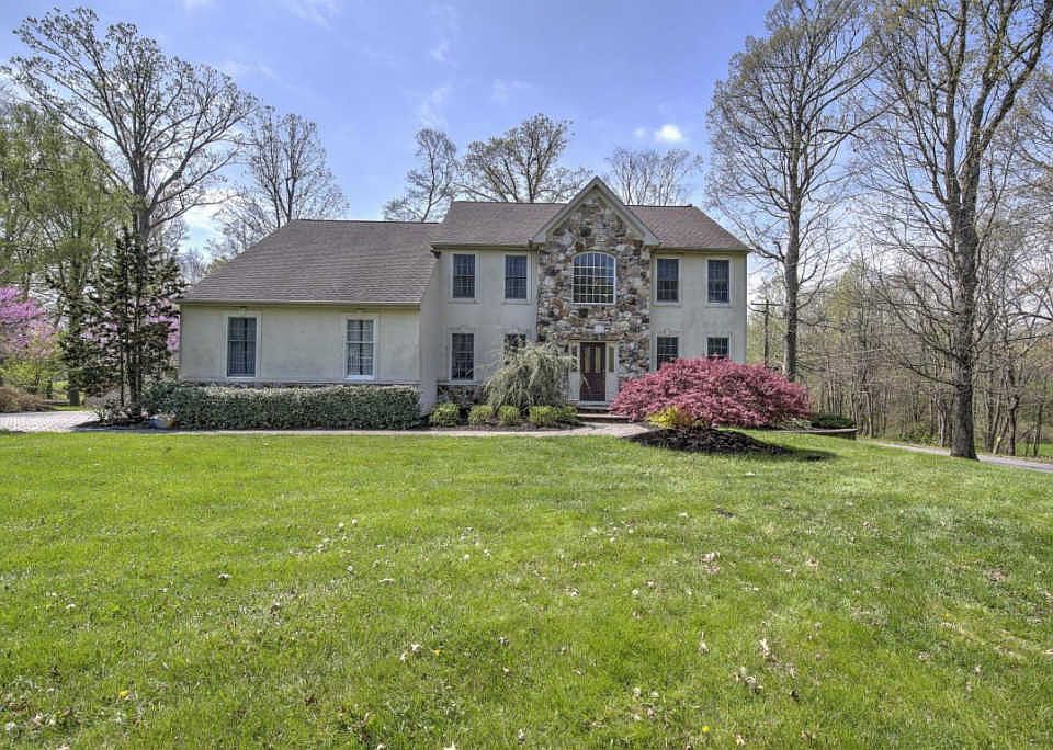 Lovely Colonial on 1.87 acres in the quiet community, Burrs Road Estates in Springfield Twp. This 4 bedroom, 2.5 bath home is immaculately maintained, featuring: 2 story Foyer, hardwood floors & decorative molding in Office & Dining Room. Kitchen has 42'' cabinets, wrap around granite countertops, & breakfast nook w/ vaulted ceilings. Recessed lighting & fireplace in Living Room w/ French doors leading to Sunroom where you can enjoy lots of natural sunlight from the skylights, equipped w/ retractable shades. Master Suite includes: bath w/ double sink vanity, shower stall, soak tub, walk in closet, & sitting/dressing area. Walkout basement, ready for your personal touch! Relax on the outdoor patio overlooking the beautifully landscaped backyard & koi pond. Enjoy all this home has to offer!