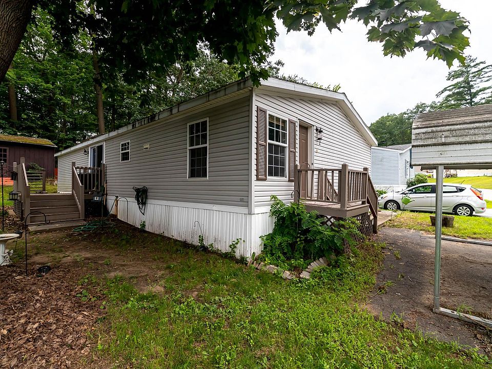 Welcome home to Merrimack! Why rent when you can own for less? This three bedroom, two bath home features a large kitchen open to the dinning and living area. Two bedrooms and 1 bath are at one end of the home and the primary bedroom and bathroom are at opposite end of the home and features 2 large closets and large bathroom with plenty of storage! Quiet location with a deck off of the dinning area and a yard with a shed for your outdoor storage needs. Also has a covered car port. Close to shopping/outlets the YMCA and conveniently located.
