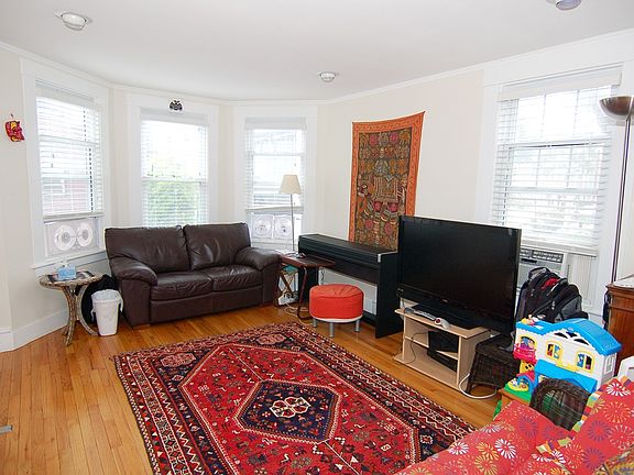 Set back on a very quiet and private way, this very spacious condo boasts a flexible open floorplan with so many possibilities. The open plan main floor is a comfortable place for family and friends to gather, share a meal, cook or sit outside in warmer weather. It features a bow-windowed living room, a spacious dining area, an ergonomically designed kitchen with a large pantry and a family room with glass sliders leading to a generous private deck partially covered by a mature tree–a combination perfect for entertaining and relaxation. Opposite the family room is a completely renovated (2010) laundry room and storage. Completing the main floor is a full bathroom with spacious counter space. The top floor, a place to retreat, was completely renovated in 2010 featuring three bedrooms and a study which can be used as a fourth bedroom and a full bathroom. Large windows bring in plenty of natural light. Additional features include exposed bricks, ceiling fan, hardwood floors throughout, an abundance of closet space throughout, two assigned off-street parking spaces. Ideally situated in the heart of mid-Cambridge just a short stroll to Harvard Square and its subway station, Inman and Central Squares, the Cambridge Public Library, and Whole Foods Market on Beacon St.