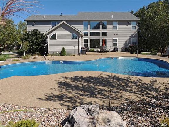 Must see this unique modern gem in Cottleville. Nested on 2+ acres level culdesac lot fully fenced w/private woods & stunning inground salt water pool. Beautiful landscaping & large patio perfect for entertaining.Elegant brick & stone elevation & side entry garage offer the charm that you have been looking for. Shows like a display home. 2 Story great rm, feature display nooks (top lighted) gas fireplace, upgraded/upscale carpet.The vaulted hearth rm offers a perfect place to enjoy a book by the warm fire(gas FP). Gourmet kitchen w/designer counter tops & backsplash, center island, planning organization center plus butlers pantry/coffee bar.Generous sized mud rm & main level laundry. Amazing master suite, coffered ceiling, spa like luxury bath, therapeutic stone, whirlpool tub. The upper level offers a large loft w/custom railing, 1/2 bath plus 4 bedrms or 3 & den-private bath & jack & jill bath.LL is framed for future finish. Distinguished design & features makes this your dream home.