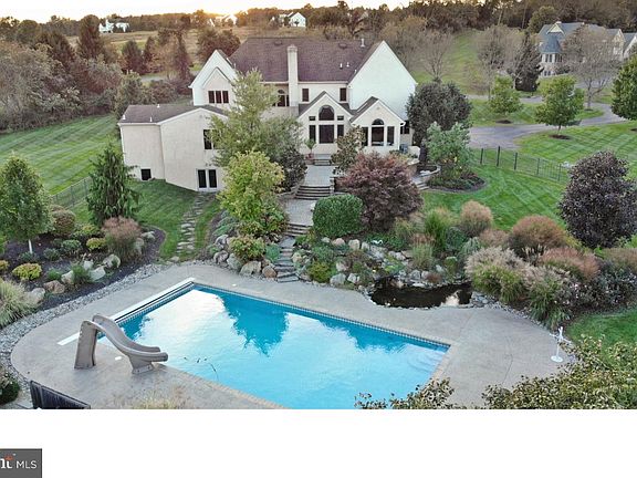 SPEND THE SUMMER IN YOUR OWN PRIVATE RESORT This multi -generational home has room enough for everyone The Pool is Open and ready for those warm summer days. Don't Miss this Opportunity to Own this Lovely Custom Home Built by Guidi Homes. This beautiful home has too many upgrades to list but here are some of the highlights: Gorgeous Custom Marble foyer and custom oak staircase. 9 ft ceilings on the first and 2nd floors with 8 ft solid wood doors. Gourmet kitchen with double granite counter tops, stainless steel appliances, gas cooking and a custom back splash. Gleaming Finished in place Hardwood flooring and Beautiful mill work throughout the home including many arched openings are evident as you preview this lovely property. Elegant formal dining room with butlers pantry for formal entertaining. A complete separate in law or Au pair suite with a private entrance includes Living room, Dining room, Kitchen and Bedroom with Walk in Closet and a full bath. The 2nd floor features a private master suite with inverted tray ceiling and chandelier, plus a beautiful marble bath with over sized Jacuzzi whirlpool tub and a separate shower. The bath also has two vanities, a towel warmer and private commode. Two spacious walk in closets are custom fitted for optimum use and complete this wonderful retreat. 4 other bedrooms share 2 full baths along with a computer nook and a full laundry room with cabinetry, sink and pull down ironing table. For comfort year round there is a 4 zoned heating and air conditioning system. The finished basement with full bath has many uses and leads out to the multi-level patio and pool area. If entertaining outside is on the days venue, then there is no more perfect place to be. The first level of the patio features a built in gas grill with refrigerator, sink and granite topped work space. Plenty of space for your dining set. On cool fall evenings, the next level sets the stage for roasting marshmallows around the cozy fire-pit. As you move down to the final pool level, you will cross over the babbling brook which feeds into the pond and overlooks the refreshing in-ground pool with sliding board. This home has unobstructed views of the countryside and the hills surrounding the Delaware River and Canal. The Community has a walking path to take you to the canal with miles of walking and biking trails. The Best of all worlds is located here in Erwinna Bucks County. The home has been Professionally landscaped and is waiting for its new owners to enjoy. Square footage does not include finished walk out basement. 90 minute commute to Manhattan but without the NJ & NY taxes. Seller is in the process of appealing the assessment so taxes will be reduced .