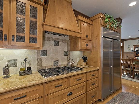 Spectacular views and exquisite craftsman-style interior by Johnson Construction. Thoughtfully laid out floorplan makes this home terrific for entertaining and accommodates large groups. Five bedrooms plus an office and a large game room. Property sale is almost 3/4 of an acre due to adjoining lot to be included with purchase and has been landscaped to create a private park with stream, waterfall, patios. Ice melt system for roof, heated front stairs, beverage mini- fridges throughout, fancy drop down TV and built in cabinets in garage, custom millwork and wainscot, dual FAU's with humidifier, laundry chute, office, study, dog bath in laundry room, FinnLeo sauna next to hot tub, warming drawer, dual dishwashers, wine cellar, Mr. Steam in master shower.