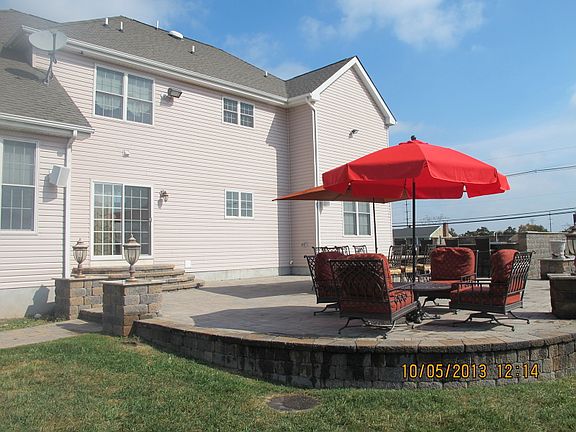 Ideally situated on a 2+ acre corner lot, this stately, brick-front, Center Hall Colonial (c.2008) commands sweeping views of the surrounding, bucolic countryside. An elegant double entryway welcomes guests into the two-story foyer, accented by an inlaid medallion in the foyer, detailed moldings, a beautiful curved staircase, and a custom iron banister. Intricate inlaid hardwood flooring flows from the living room, warmed by a bay window, into the formal dining room, refined by sophisticated millwork. Hardwood floors enhance the family room, offering a stylish granite fireplace, and continue throughout the home. The designer kitchen boasts top-of-the-line finishes including Wolf and Sub Zero appliances, an 8??? granite island, and extensive cabinetry. In the adjoining breakfast room, French-style glass sliders spill out onto the extensive paver patio. An outdoor kitchen, outfitted with granite counters and a built-in grill, bar, and appliances, affords an exceptional alfresco dining experience. On the second level, a vaulted master bedroom suite proffers a sitting room, walk-in closet, and spa bathroom. Three additional bedrooms share a hallway bathroom with a double vanity. A charming study, powder room, and back staircase complete the home. The sizeable basement has been framed for multiple rooms, including a bathroom and bar area, and is prepped for finishing. Outside, the professionally landscaped yard and fenced-in, heated, saltwater pool with spa offer opportunities for recreation and relaxation.