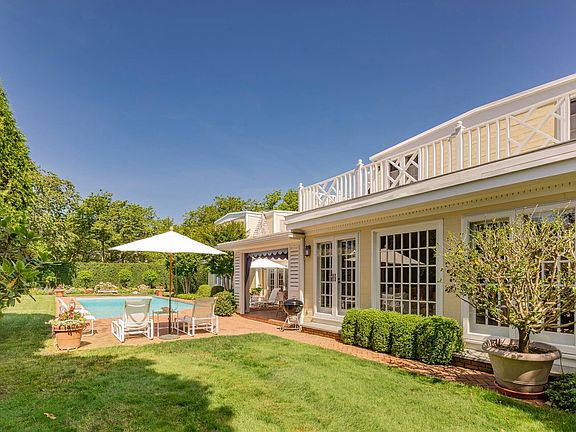 Tucked away on one of the most iconic private streets off world-famous Gin Lane, this classic Southampton residence offers timeless charm, privacy, and exclusive beach access. Set on beautifully landscaped grounds, the property is surrounded by lush greenery, creating a serene oasis just moments from the ocean.Inside, the home is filled with natural light, with large windows and French doors that invite the outdoors in. The main house features five bedrooms and six bathrooms across two levels, including a sun-drenched primary suite with dual baths, walk-in closets, and a private terrace. A separate guest wing offers additional space and comfort for visitors.Gracious living and dining rooms, a bright and functional chef's kitchen, and a cozy den all open to the gardens, perfect for relaxed summer living. Outdoors, the covered porches and patios are ideal for entertaining, while a heated gunite pool is nestled among mature landscaping. With private access to one of the most beautiful beaches in the Hamptons, this is a rare opportunity in the heart of Southampton Village.