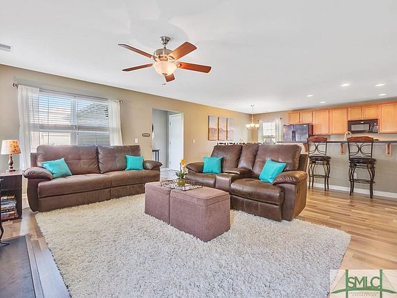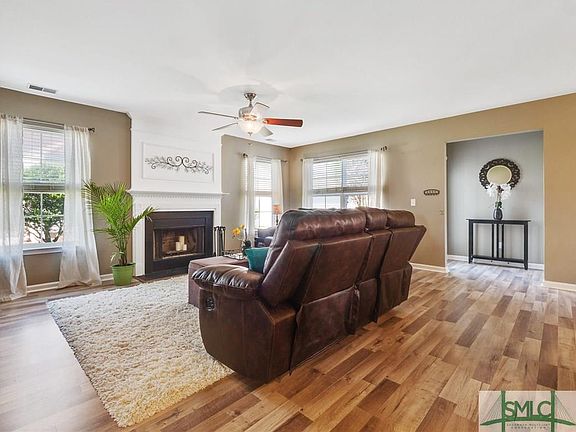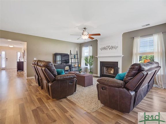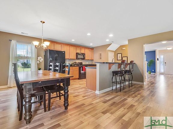 Gorgeous 4BR/3BA 2400sqft Home in Godley Park overlooking Large Park with Bedroom & Full Bathroom on Main Floor! Open Concept Kitchen overlooking Spacious Living Room w/ Wood Burning Fireplace and Dining area! Formal Dining Room in front can be used as a 2nd Living Room, Office, or Playroom. This beautiful, 2 story home features a foyer entrance, new laminate wood floors throughout main living areas, separate dining room, a spacious great room with a fireplace, kitchen with appliances, a breakfast bar, breakfast area and pantry, a 2-car garage with an auto opener, laundry room with storage, and a master suite with dual vanities, separate shower and tub, a walk-in closet and a balcony. Community swimming pool, playground, clubhouse and fitness center are all included with the HOA as keeping your grass cut! Convenient to I-95, the airport, shopping and restaurants. Fantastic Pooler Location In the Highlands area w/ Savannah Address! Rear entry 2 Car Garage and patio.