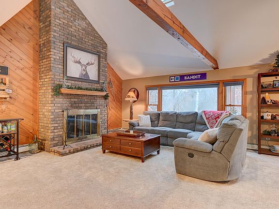 Come Fall in Love with this warm, welcoming duplex townhouse at Fairview on the Intervale, a hidden gem of a townhouse complex in one of the most convenient and appealing locations in the Valley. Set back on 4+ peaceful acres just off 16A, 8 townhouses and 2 condos share landscaped grounds, a gazebo and swimming pool. Unit 2, on the cul de sac, can happily be a year round or vacation home. Its cathedral great room with brick fireplace, beamed ceiling, plenty of windows and access to the big back deck, is as comfortable a sitting room for one as it is a great room for entertaining friends and family. There’s a first floor bedroom and bath, and kitchen with direct access to the garage. Upstairs you’ll find the primary suite, third bedroom, bath, ample storage and a sweet little balcony overlooking the living room. The full, finished walkout basement includes a family room, laundry, and two other rooms: bunk room? Exercise room? Office? Or whatever you need. Most furnishings are included, so you can move right in and enjoy!