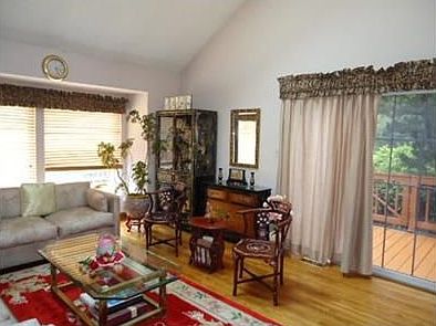 Gated community w/no age limit. 0pen flr plan W/cathedral ceiling.Wood floors throughout first flr.Eat in kitchen.Formal Dining rm.3/sided fireplace.Large wrap around deck w/3 sliders open's to golf course.Finished basement.Newer roof, driveway, washer, dryer and Fridge.New AC/. Walking distance to New York Bus