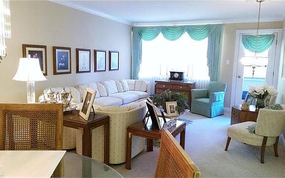 FABULOUS FIND! This condo has it all with 2 large bedrooms, 2 full baths and a garage! Tastefully appointed with crown moldings, fluted trims, arched panel doors and decorator touches throughout. Columns accent the entry foyer. Spacious living room has atrium door that walk out to breezy balcony with great view of trees in the common area. Floor to ceiling mirrors enhance the formal dining room. Efficient, updated, galley kitchen has bright white cabinets with pull out shelves, pantry and breakfast bar. The master suite has a full wall of closets with mirrored doors and bath with walk-in shower. The second bedroom has sliders that open to balcony. Could be a great space for home office. (Pictures will be removed and walls repaired prior to closing). Owner is an Elvis fan so check out the Elvis laundry room and Elvis performing in the Hall bathroom. This unit comes with a storage unit in the basement, one car garage, plus additional assigned parking space. New roof installed Oct. 2016!