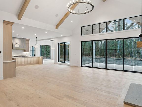 This stunning new Brush & Hammer build is perched atop Cumberland Foreside on a lovely wooded lot! This home melds timeless construction with transitional style to create an ideal blend of luxury modern living. With custom details throughout, the shingle-style New England charm is anchored by the top quality finishes that Brush & Hammer are known for; expanses of windows, Hardie Board siding, and exceptional design carpentry in the cabinetry, built-ins, and millwork. The soaring great room features a gas fireplace, built-ins, and an impressive sliding door that opens to a covered deck. An entertainer's dream, the designer kitchen boasts an oversized island, a gas Thermador rangetop, double wall ovens, a walk-in pantry, and a bar with beverage center & ice maker. The first-floor primary suite is nothing short of enviable, with a bespoke walk-in closet with island and a spa-like bath. Upstairs, the additional three bedrooms all feature walk-in closets. A private office and highly functional mudroom are perfect for the busy household. Additional space for lounging and working out is found in the finished basement with half-bath.