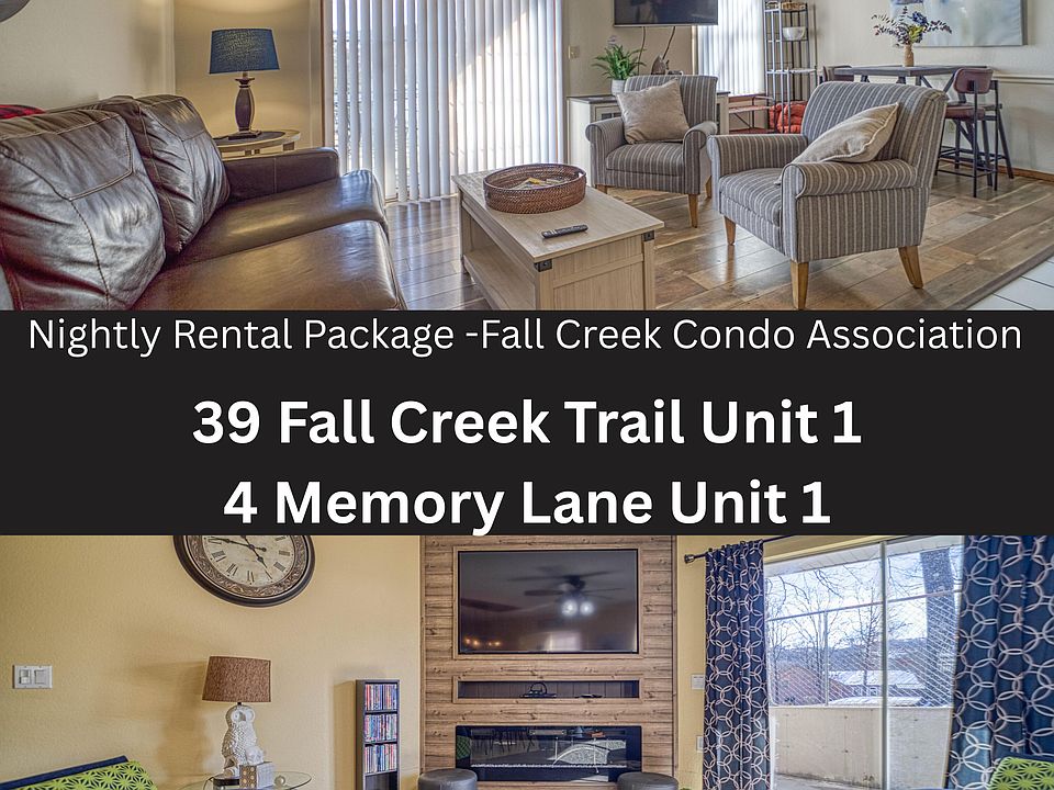 Fantastic opportunity for investors! This listing includes two fully furnished, turn-key nightly rental condos in Branson, currently operating as successful short-term rentals. Both units feature main-level walk-in entries for guest convenience and are outfitted with Yale Bluetooth locks for easy remote access and code management.Units included: 39 Fall Creek Dr #1 - Rare 3BR/2BA unit with spacious layout and a large private back patio. Sleeps 8+ with hide-a-bed. 4 Memory Ln #1 - Well-appointed 2BR/2BA condo with pond view, sleeper sofa, and updated furnishings. Sale includes all furniture, appliances, and decor--fully ready for new ownership. Located just minutes from Branson's 76 Strip and top attractions, shopping, and dining. Ideal for portfolio expansion or a hybrid personal use/investment setup. Owner would consider selling units separately.