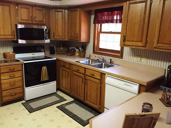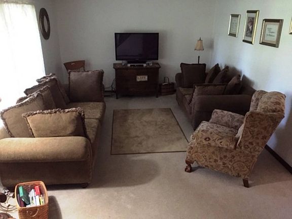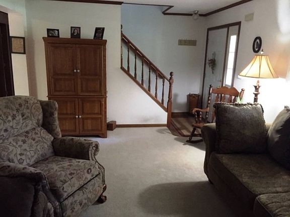 Great Living in Shady Grove Estates. Beardstown's prestige subdivision. Entrance: paved drive has circle entrance for extra parking. Stamped concrete sidewalk to front porch. Front porch flanks entire south side of home with covered entrance for swings or rocking chairs. LR living room has painted walls, neutral carpet, and an open staircase to upper level. DR: open to living room and kitchen. French patio doors leads to deck. Deck is remarkable size and has an octagon area for extra seating. Kitchen: lots of cabinetry with built in appliances that include micro, range, refrig, dishwasher Utility room near downstairs half bath includes washer and dryer (now stored in garage as tenant wants to use her own) extra storage in this room Half bath has bone fixtures, access to utility room. BR: painted walls, nice carpet, closet MBR: large room with painted walls, nice carpet, closet and private full bath with bone fixtures. Upstairs: large open second floor family room has a fireplace, neutral carpet, and could easily be converted to a bedroom with fireplace. Bath: full bath up has white fixtures, and vanity, tub/shower, commode. BR upstairs is large and has nice carpet, and closet. Basement: full dry basement has brick textured walls, built in shelving, stripe carpet. It also holds the HE furnace, CAC and water heater TWO FULL LOTS for private back yard. code 240 re tax $4196.52 07132016