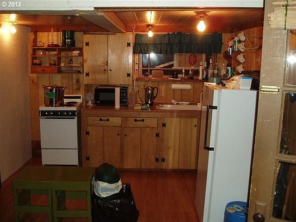 CABIN ON FOREST SERVICE LAND. LAND IS LEASED FROM F.S.. NO RUNNING WATER, OUTDOOR PRIVY, VERY PRIVATE. 1 OF 10 CABINS IN THIS TRACT. BOARDERS BIG BOULDER CREEK & IS ADJACENT TO S. SANTIAM RIVER. GATED TRACT. KITCHEN, LIVING & DINING ALL ONE RM. LOFT HAS 2 BEDS, ELECT. RANGE, REFRIG. ,F.P., HIDABED/COUCH, COV. FRONT PORCH/DECK.
