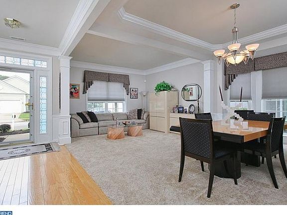 Great new price!!! Elegantly appointed 55+ community of single family homes at Traditions in Voorhees. One floor living at its best. Two bedroom two bath ranch home with two car garage. Great floor plan featuring island kitchen 42 inch cabinets and built in desk overlooking expanded family room with gas fireplace and sliding glass doors to yard with large patio. Master suite boasts a large walk-in closet and master bath with soaking tub stall shower and double vanities. Amenities include hardwood floors crown molding wainscoting ceiling fans and new hot water heater. Club house features pool spa gym showers meeting/party rooms pool table and library. Low condo fees and easy access to all major highways