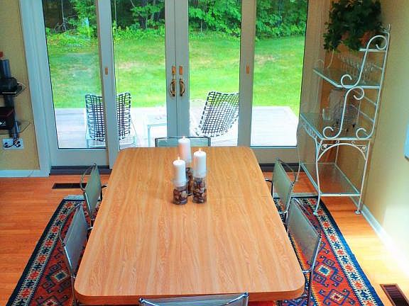 Sought after contemporary 4 bdrm,3 ba end unit. Open floor plan includes: oversized Great Room w/ frpl & skylights,cozy dining area w/ high ceiling, french drs open to private extended deck overlooking woods,enormous storage closets plus for storing all weather gear,& quaint white galley kitchen.Amenities:marina,tennis,heated outdoor pool,play area,exercise rm,sauna,library,party area.TURNKEY..