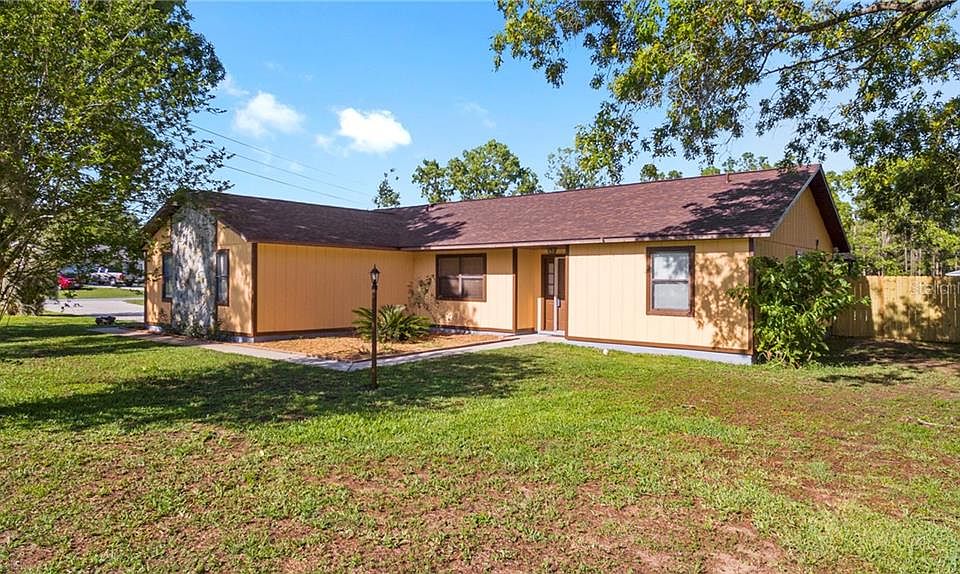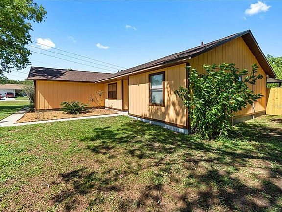 BACK ON THE MARKET! Cute 3 bed 2 bath pool Home on a corner lot that boast over half an acre! NEW ROOF, NEW FENCE, NEW POOL PUMP, & FRESHLY PAINTED! As you approach the home you will be welcomed by the freshly done landscaping. Entering the home you will find the dining to your left overlooking the living room. To the right you will find the spare 2 bedrooms and bath. To the left of the kitchen you will find the master suite. Off the living room you will find the sliding glass door that enters into the enclosed lanai and out to your covered porch that leads to your private pool oasis. Also in your private area there is a detached shed that has been converted to an office space, craft room, or she shed if you will. Close to Shopping, Parks, and Schools! Don't let this one pass you by!