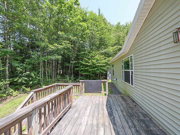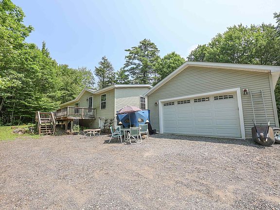Perfect for first time home buyer! Double wide mobile home on its own land .68 acre with 2 stall heated garage with storage above. Improvements include 2 Mini Splits, and pellet stove. Partial basement has oil tank, dry storage space with cement floor 4 1/2 ft high ceiling. Three season porch leads out to a huge private yard with patio area and shed. Easy access to garage from home with an enclosed hallway. Open concept living room and kitchen/dining area. Primary bedroom with large 3/4 bath. Easy access to Rte 104. Showings begin Saturday 7/22 from 12-2 and Sunday 7/23 11-1