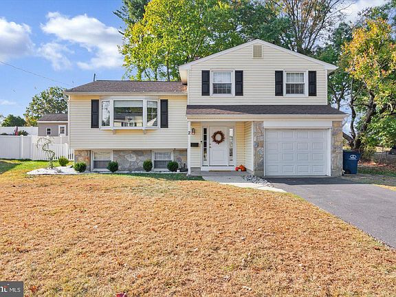 ALL OFFERS ARE DUE BY 12PM, OCT 28, 2024. Your home search ends at 2 Flintstone Dr in Marlton! Welcome home to this tastefully updated house by a custom builder. Every aspect of the remodel is top notch! From finished garage walls/ceiling to new front door with two sidelites, 2 panel wood doors t/o with custom moldings, and recessed lights. Impeccable flow of modern convenience of wide plank waterproof LVT floors, refinished original hardwood floors, and stunning fully equipped kitchen with 42 inch cabinets, granite counters, stainless steel appliances including the gas stove! Impressive, exceptionally grand entrance foyer with modern wrought iron railing is stunning! It leads to direct access to the garage, family room and looks down to the newly finished den/office with an oversized closet! This beautifully designed space adds to additional sq ft, making approximately 1700 sq ft of living space. Adjacent to the den is a huge unfinished utility room for lots of storage, and laundry area with new washer/dryer. Ample sized bedrooms and brand new hall bath! Designer look wall paint is done in gorgeous calming one tone t/o. Custom window treatments with top down/bottom up features. Nice, big bay window in the spacious living room flows into the dining room that overlooks the beautiful backyard! Kitchen walks down to the newly installed paver patio and custom white vinyl fencing! Recent upgrades also include HVAC, roof, windows, and vinyl siding with stone accent. Perfect for families with kids or four legged loved ones!. Seller put in much of the extra touches within the last few months, but sadly, she's being relocated to another state. Balance of home warranty from First American's Max Plan is included. One of the best streets with caring neighbors! Excellent schools! Close to all amenities...great shoppings, restaurants, near Jersey shores, and approx 20 mins to downtown Philly. You've found your Home Sweet Home that checks all the boxes! Most furniture is for sale. Seller works from home so showings by appointment only. Call the listing agent for details Hurry or you'll miss this one for sure!