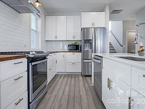 Beautiful and bright contemporary home in the heart of West Asheville! This home is full of modern custom finishes making for easy living. Open concept living area features gas fireplace, 9' ceilings, chef's kitchen with huge quartz island and energy star appliances including gas range. Primary bedroom has access to covered back deck with views of downtown! Check out the relaxing ensuite bathroom with shower room and stand-alone tub and double vanity. Additional main level bedroom has so many possibilities. On the upper level, you'll find two more bedrooms, a full bathroom and another living space to use for work or play. You'll never run out of storage space with ample walk in closets and a huge crawl space. The home is fully fenced with garden plots for flowers or vegetables. You'll enjoy the gentle fragrance of English roses blooming in the spring on your covered back deck. Home also features a 240V Electric Vehicle charging station and Google Nest smoke alarms.