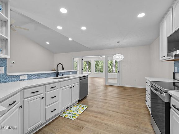 Gorgeous remodel of this custom-built home on a large, private, park-like lot in popular Foxfire. The split bedroom floor plan includes a beautiful Carolina Room. This sun filled, single level home has recently been updated, remodeled and transformed! This is no cookie cutter! New smooth ceilings throughout the home with plenty of recessed lighting, new light fixtures, ceiling fans & ''Fandeliers''. The home has been freshly painted from top to bottom. The kitchen features a gorgeous tile backsplash, NEW stainless appliances, quartz countertops, a large peninsula with overhang to accommodate 4 bar stools. The walk-in pantry has newly installed custom shelving. New LVP flooring throughout, except BR #2 & #3, which are carpeted. Plumbing upgrades include all new sinks, plumbing valves, faucets & shower fixtures (all Delta) and NEW soft closed, smooth-skirted, chair height toilets. Bathrooms have new shower doors & quartz countertops. Other upgrades include a barn door to the laundry room, new laundry cabinets, all new cabinetry hardware, plus new doorknobs, exterior door locks, & new shelving in the walk-in closet. The spacious, oversized garage includes a new epoxy floor, fresh paint & a new utility tub. The exterior upgrades include a new mahogany front door, new tongue-in-groove front porch ceiling with recessed lighting & new front porch post. The exterior brick has been painted and matching siding installed. New HVAC, floor registers & new 6 mil plastic in the crawlspace. The septic, roof, generator & hot water heater have been inspected. The exterior has a new paddock style fenced backyard with black wire & a new pergola on a freshly painted slab plus a rear patio. The landscaping is a wonderful mixture of gorgeous mature planting & extensive new landscaping & sod. The property includes a generator and shed/workshop with electric & lights. There is no HOA in Foxfire. However, residents can enjoy amenities such as pickleball & the 51 acres Village Green Park.
