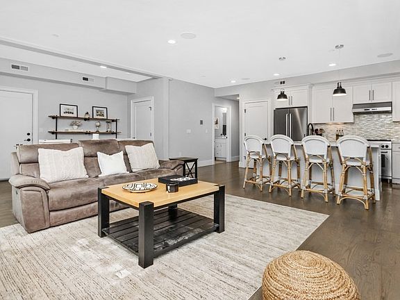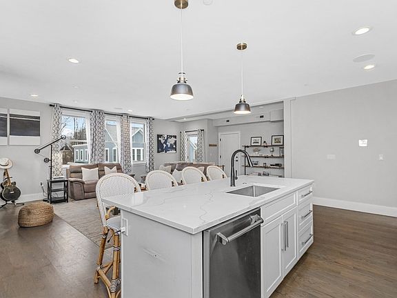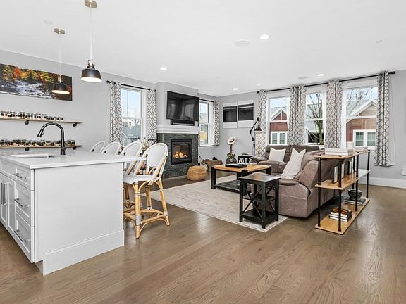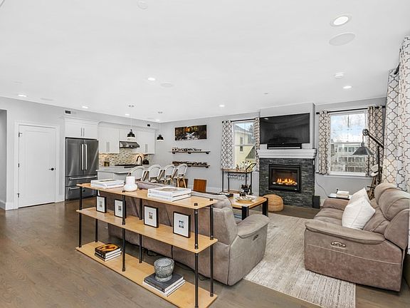 Pristine penthouse living in Dorchester’s coveted Clam Point! A rare find 2 bed 2 bath w/ almost 1,300 SF on one level w/ 2 off-street parking spaces. This 2018 exceptionally built unit boasts a wide open floor plan w/ gas FP in living room, kitchen island w/ seating for 4, top of the line SS appliances w/ range hood, quartz counters, front glass railing deck, full guest bath, primary bed w/ an inviting deck, walk-in closet w/ custom built-ins, en-suite bath w/ enclosed glass shower, guest bed is generously sized & also has custom built-in oversized closet. No detail has been overlooked in this fabulous condo: immaculate HW floors throughout, recessed lighting, Central AC, in unit W/D, surround sound speakers, high ceilings, excellent natural light, ample closet space thru-out. This unit has roof rights for a roof deck & a huge locked storage closet in the basement. Located on a dead end street in an quiet neighborhood w/ easy access to the T, highway, and Dorchester shops/restaurants.