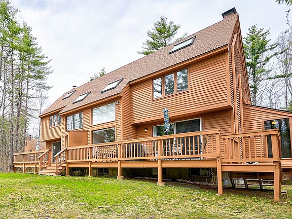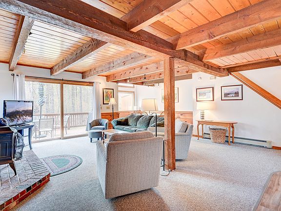 Welcome to Fox Run, a beautiful association of townhouses located in low-tax Bartlett. Stepping inside this unit, you’re greeted by bright, natural light, an open floor plan, rustic exposed wood beams across the ceiling, and wooden accents along the walls. The kitchen, open to the living room, boasts natural wood cabinets and an eat-in peninsula. There’s a separate dining area set into a nook with large picture windows, open to the floor above. The living area is centered around the cozy woodstove, and has glass sliders leading out to the large deck, a great place to grill and relax in the summer. A ¾ bath is located off of the kitchen. Upstairs are two nicely sized bedrooms, each with a mini-split, that share a full bathroom. A loft space with large skylights on the third level provides a nice bonus space for sleeping, a playspace, even an office. The large finished basement is a great second living area plus a dedicated laundry room, with space for a home gym, kid’s area, there are tons of possibilities. Fox Run enjoys fantastic proximity to Cranmore and Attitash ski areas plus cross country ski trails, North Conway Village, and Storyland and the Living Shores Aquarium. Residents enjoy access to the association pool, tennis courts, and more!