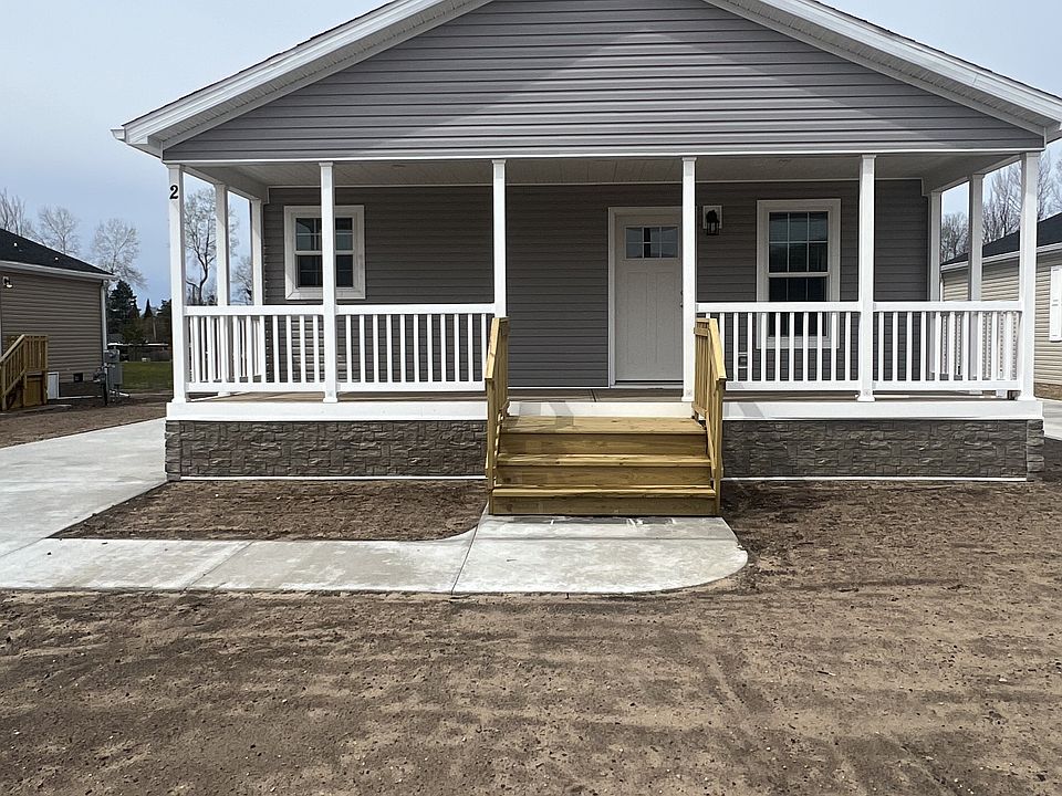 Hurry! This brand new home won't be available too long! It has an amazing full front porch for your relaxation, it also includes an open floor plan with a fantastic kitchen with island for the chef in the family. It is also a full drywall home, flat ceilings, high efficiency gas furnace, three large bedrooms, ensuite of primary bedroom. It also includes central A/C, all appliances, and off street parking.