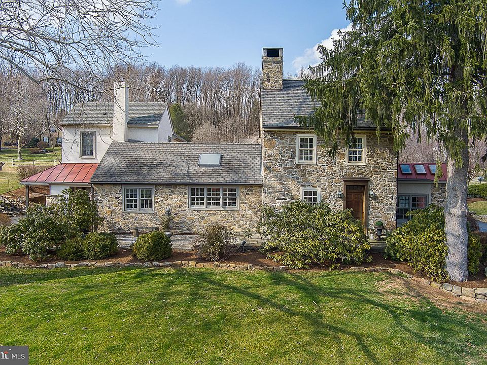 A horse lovers paradise, 2 Fox Run Road is 4.4+ acres of idyllic pastures situated on a private cul-de-sac in desirable Chester Springs. Just feet from the property, horse trails beckon and connect to miles of beautiful woodlands and meadows stretching to the Horseshoe Trail, charming Birchrunville, and the surrounding countryside! The large barn offers 6 birthing stalls and tack room at ground level, 5 stalls down below, and multiple haylofts and large open space to store tractors and cars. The West Vincent Township park is steps from the yard, and all of this just off PA 401 with easy access to Route 202 and Turnpike. Step back in time into the 1700's farmhouse that can be traced back to the William Penn Land Grant, meticulously restored over the last 20 years. A two-story addition was added and created an open floor plan with an expansive Great Room on the main level and two bedrooms and bath above with laundry chute. Those two bedrooms can also be easily converted to one large primary if so desired, and with outside access and separate staircase creates option for multi-generational living. The Farmhouse has been lovingly restored, inside and out, with exposed stone walls, original and custom hardwood flooring, and several rooms with radiant heated floors. Additional eye-catching features include custom solid wood doors finished with original hardware, curved walls, deep window sills, reclaimed wood beams, and numerous custom built-ins and remodeled closets providing plenty of storage space, to name just a few! The remodeled kitchen has custom beams and cherry cabinetry, honed marble counter tops, 2 custom deep sinks, Paramount faucets, Kitchen Aid double ovens that include a built-in convection microwave, and a slow cooker warming drawer. There is also a Kitchen Aid Gas cooktop with motion activated exhaust hood, Bosch dishwasher, Integrated 700-2 Sub Zero Refrigerator with custom wood panels, Marvel Luxury series beverage and wine refrigerator, and Velux programmable skylights. The home offers a Library, Sun Room, Keeping Room, Kitchen, Great Room, Bed Room or office, Laundry (with pocket door) and half-bath on the main floor. On the second floors, a Master Bedroom with on-suite, 2nd Bed Room and bath in the Farmhouse, with 2 more Bedrooms and full-bath in the addition. The third floor of the Farmhouse is a Bedroom presently used as an office. There are 4 wood burning fireplaces T/O and a Lopi wood stove in the kitchen, giving this home plenty of places to curl up with a good book. An additional 500+ sf of finished basement provides a game room and separate gym area with plenty of space for exercise equipment. The patio doors off the kitchen and Great Room allow for entertaining and sweeping views of the bucolic gardens, landscaping, and custom waterfall with koi pond. The salt water heated pool, outdoor shower, numerous patios, gazebo and firepit areas are complete with a custom tiki bar that provides a perfect place to entertain and extend your living area outside to enjoy the gorgeous views. A whole house Generac Generator and 1000 gallon propane tank (owner owned) ensures you will never be without power, and your dogs can roam worry-free due to the invisible fence.