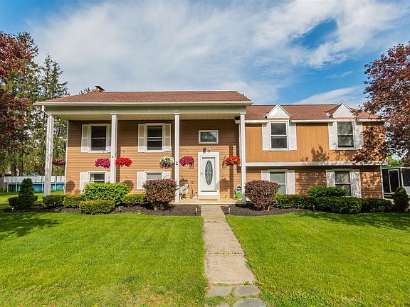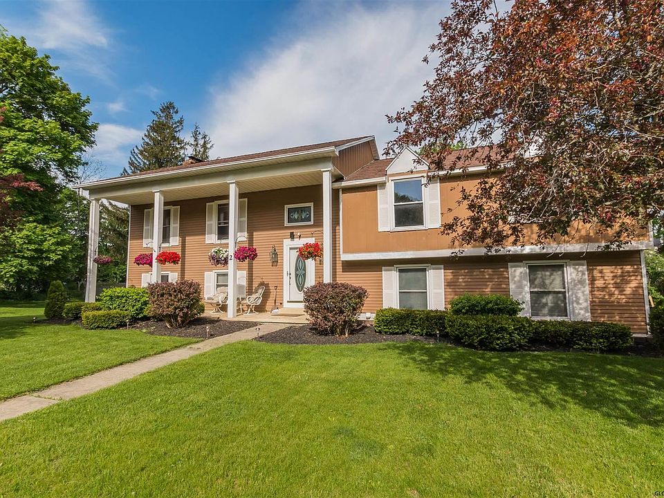 Imposing split-level ranch on a quiet cul-de-sac in the Village of Canajoharie. Upper level has a spacious living room with new wood floors, a cozy fireplace with pellet stove and abundant windows for plenty of natural light. The living room opens to a beautiful, recently renovated kitchen with granite counter tops and new appliances. Three bedrooms and two full baths complete the first level. Lower level could be a separate apartment as it has it's own kitchen, living room, bedroom and bath with separate access to the back yard. Two-car garage. Large, manicured lawn and outbuilding with jacuzzi tub that can be used all year. Tranquil covered porch is great for relaxing outside. Wonderful home for a large or extended family.
